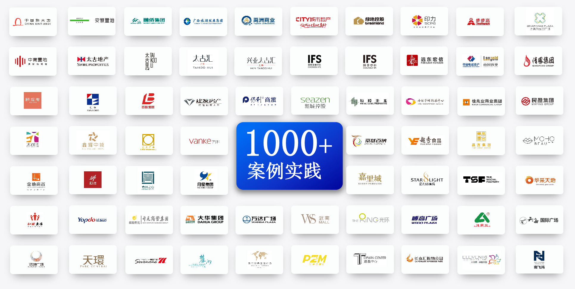 近30年來(lái),團(tuán)隊(duì)服務(wù)行業(yè)客戶已突破1000家,在商業(yè)地產(chǎn)行業(yè)Top50企業(yè)中,海鼎科技客戶覆蓋率達(dá)60%,包括:恒隆地產(chǎn)、太古地產(chǎn)、九龍倉(cāng)集團(tuán)、印力集團(tuán)等知名企業(yè),擁有前沿、可靠的商業(yè)地產(chǎn)數(shù)字化建設(shè)經(jīng)驗(yàn)。